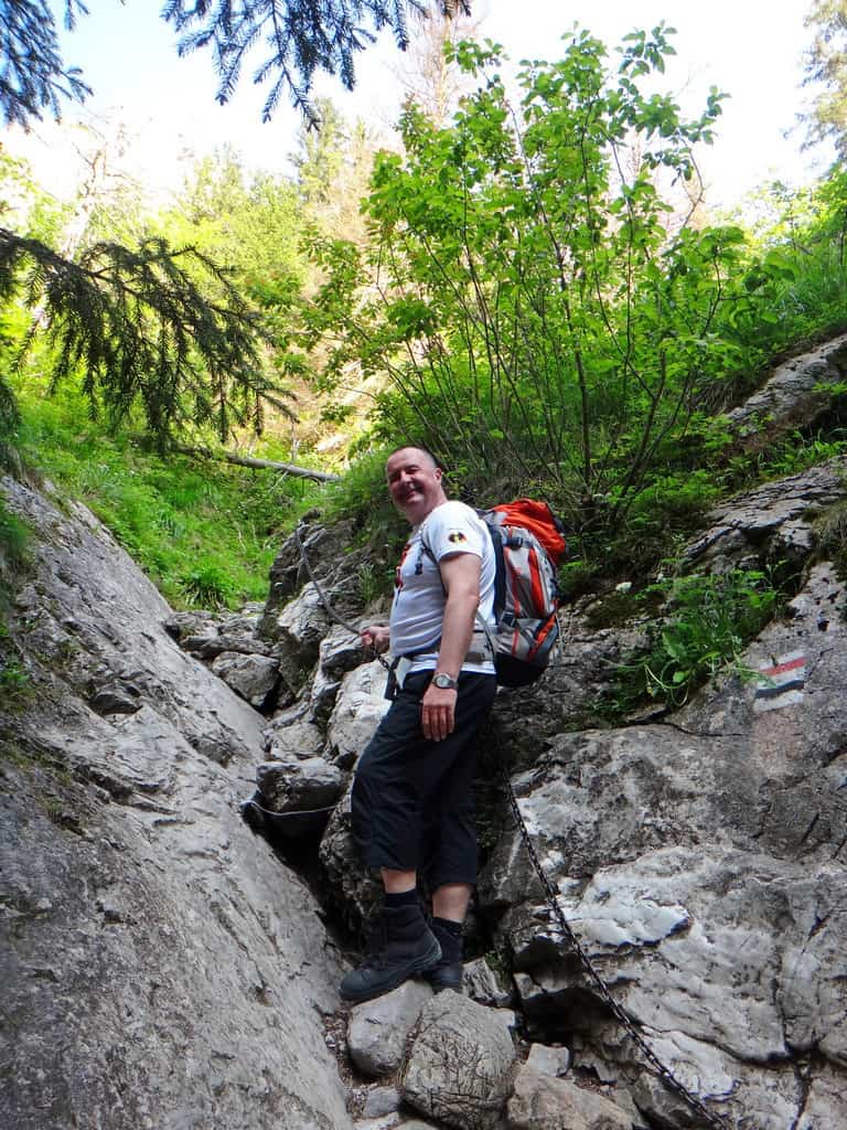 Punkt poboru opłat wstępu do TPN u wylotu Doliny Kościeliskiej minęliśmy tuż po 7 rano, było więc za wcześnie by rozpocząć naszą speleologiczną przygodę w Jaskini Mroźnej (ta otwierana jest o 9.00). Postanowiliśmy zatem udać się od Jaskini Mylnej. Za Polaną Pisaną odbiliśmy w prawo na czerwony szlak. Tu od razu czekały nas pierwsze emocje – łańcuchy!