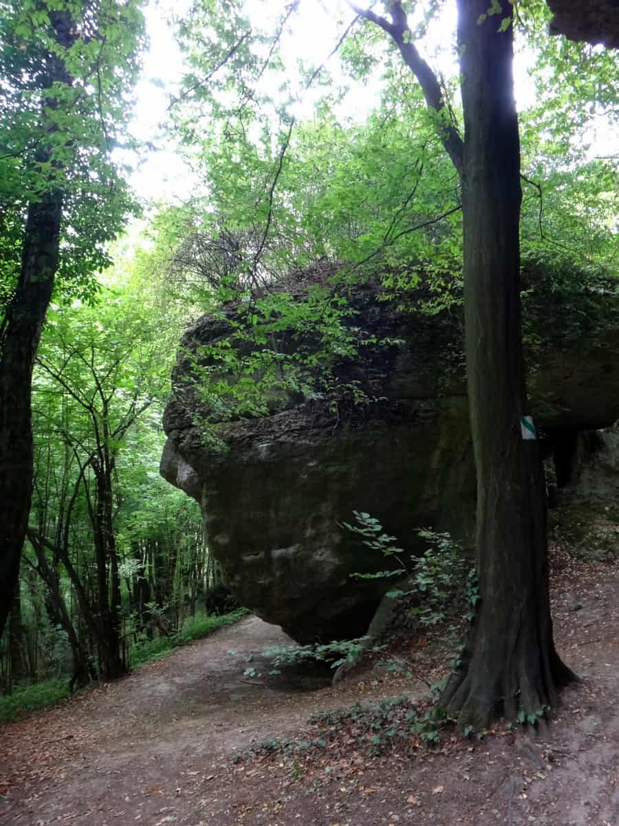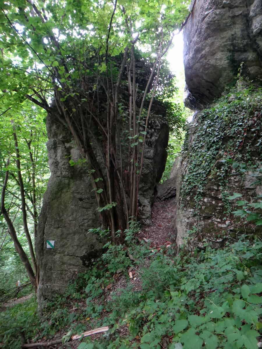 Pnie się dosyć stromo pośród chaszczy pod górę zataczając pętlę wokół skałek. Po chwili wspinaczki teren nieco się wypłaszacza i wkraczamy do kamiennego świata.