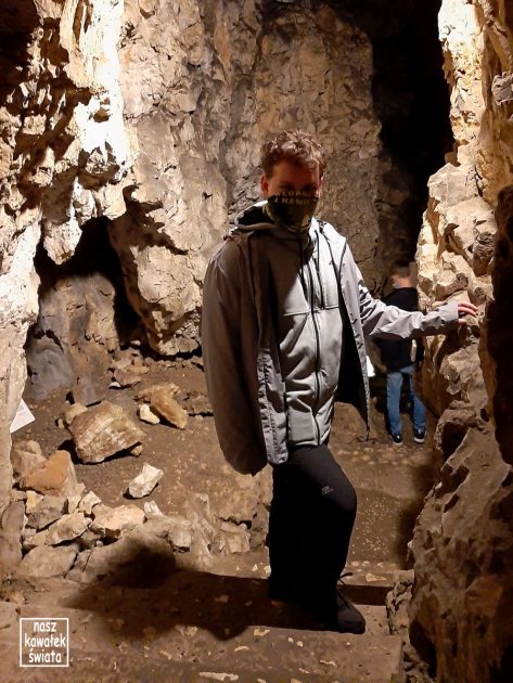 Podczas zwiedzania przeleciał także nad naszymi głowami nietoperz. W lecie nie ma ich tu dużo, ale w okresie zimowym w jaskini hibernują m.in. podkowce małe, nocki duże i gacki wielkouche.